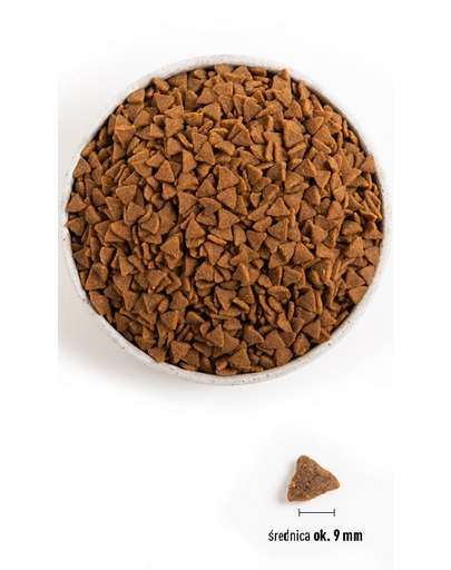 Proteină brută 34,0%, Uleiuri și grăsimi brute 16,0%, Fibre brute 4,0%, Cenușă brută 9,0%, Umiditate 10%, Calciu 2,0%, Fosfor 1,4%, EPA 0,2%, DHA 0,3%, Omega-6 2,5%, Omega-3 0,8%, Magneziu (min.) 0,1%, Taurină (min.) 0,1%, Carbohidrați NFE 27,0%.