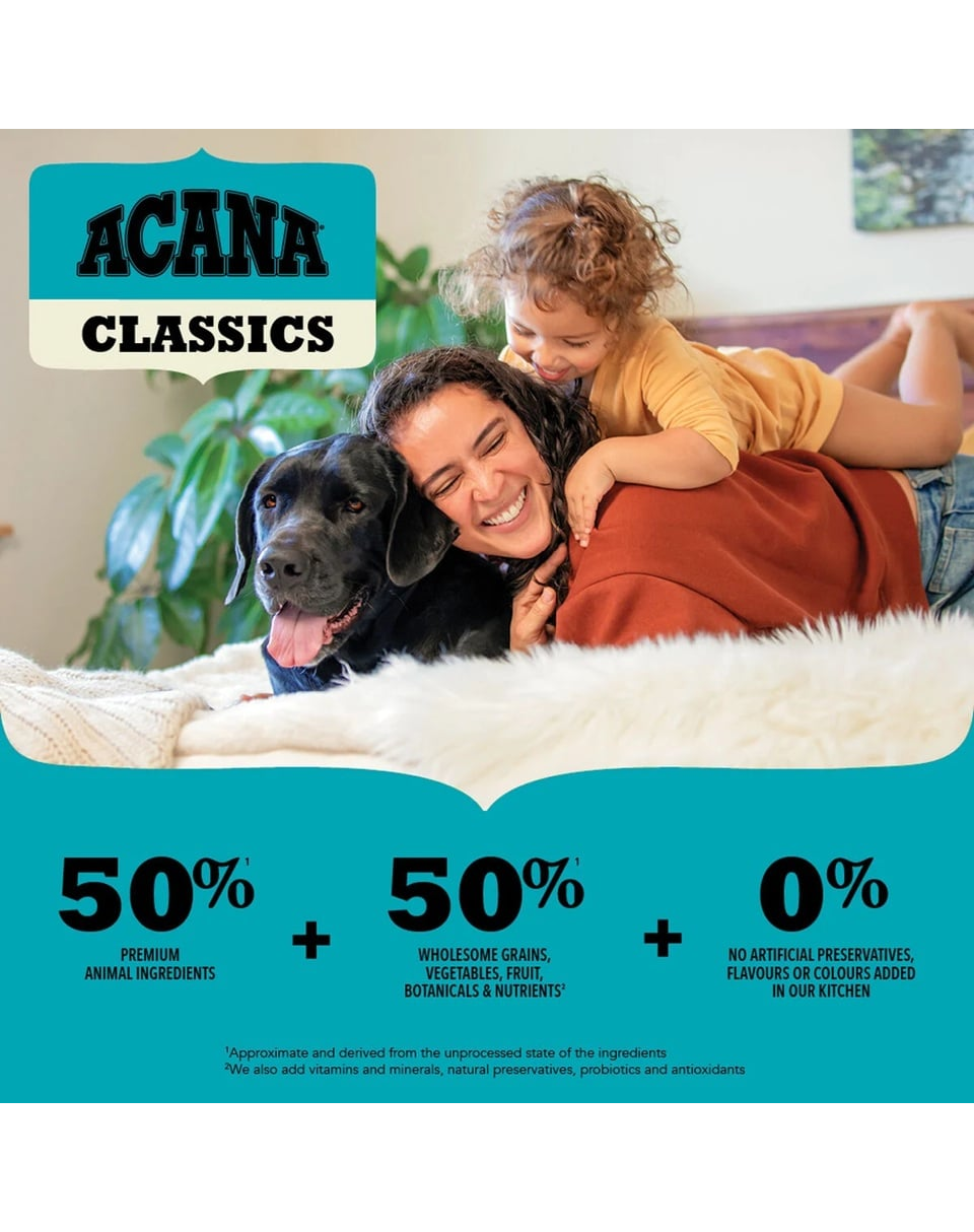 Conținutul scăzut de carbohidrați din Acana previne vârfurile de zahăr din sânge și, prin urmare, minimizează riscul de diabet și de apetit excesiv la câini. Nivelurile ridicate de proteine valoroase oferă o senzație de sațietate mai repede și pentru mai mult timp.