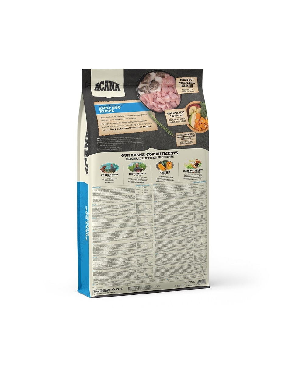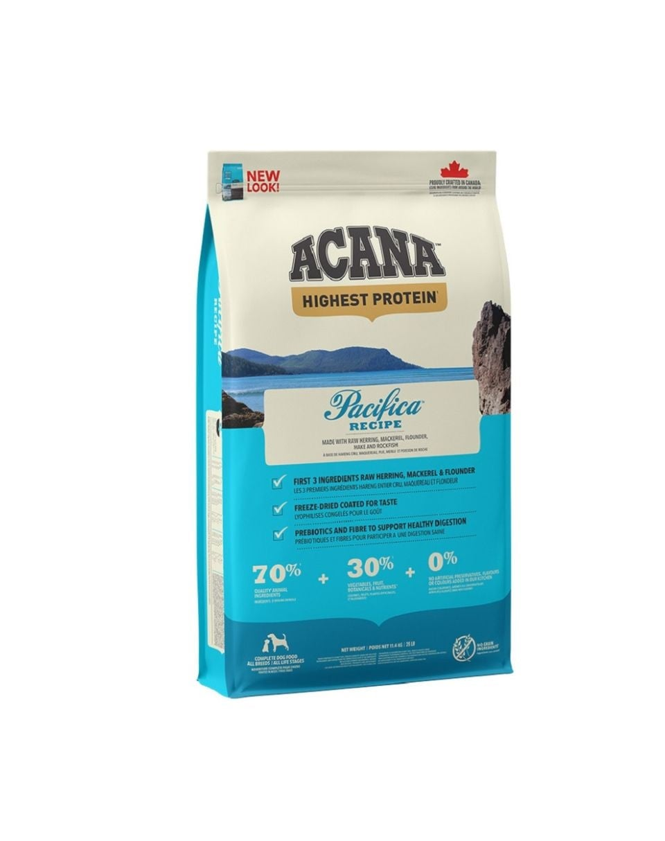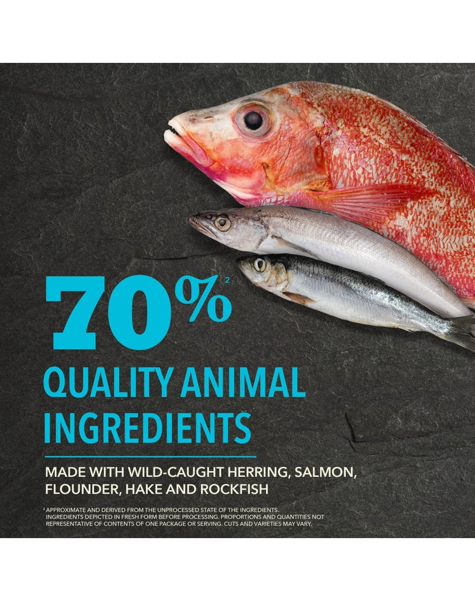Rețeta constă în 70% pește natural din apele canadiene din Pacificul de Nord. Sunt folosiți, printre alți pești, sardinele, heringul, cambula, codul alb, merluciul și uleiul de somon. Acestea fac hrana să fie bogată în proteine ușor digerabile și să abunde în grăsimi sănătoase și acizi grași nesaturați Omega-3 și -6. Nivelurile scăzute de carbohidrați împiedică creșterile de zahăr din sânge, reducând astfel riscul de diabet și apetitul excesiv la câini. Un nivel ridicat de proteine valoroase oferă un sentiment de sațietate mai rapid și mai îndelungat. Peștele este o sursă importantă de grăsimi sănătoase, proteine și acizi grași nesaturați care întăresc inima, creierul, îmbunătățesc starea pielii și a blănii. Adaosul de fructe, legume și ierburi îi îmbunătățește gustul și aroma. Merele, perele și dovleacul oferă vitamine și antioxidanți naturali, susținând astfel sistemul imunitar.