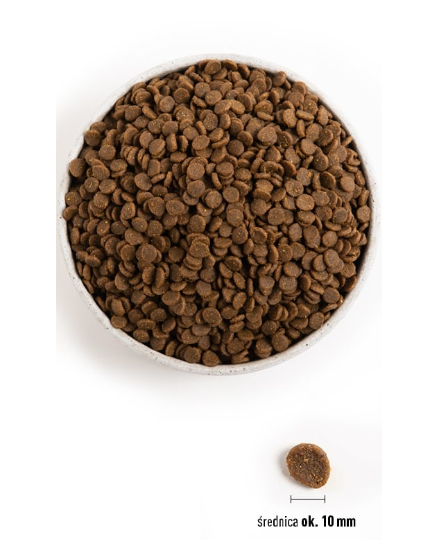 Proteină brută: 37.0%, grăsime brută: 18.0%, fibre brute: 3,0%, cenușă brută: 9,0%, calciu: 1,6%, fosfor: 1,2%, magneziu: 0,1%, umiditate: 10,0%, acizi grași Omega 3: 0,6%, acizi grași Omega 6: 3,5%, taurină: 0,1%, DHA/EPA 0,2%/0,2%.