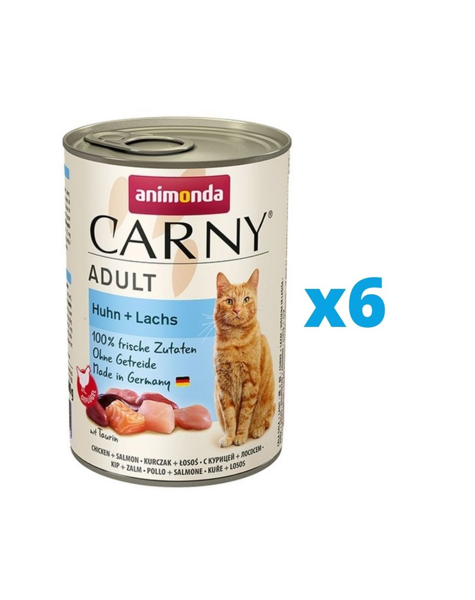 60% carne de pui (inimă, ficat, carne, pipotă), 10% somon, carbonat de calciu, clorură de sodiu.