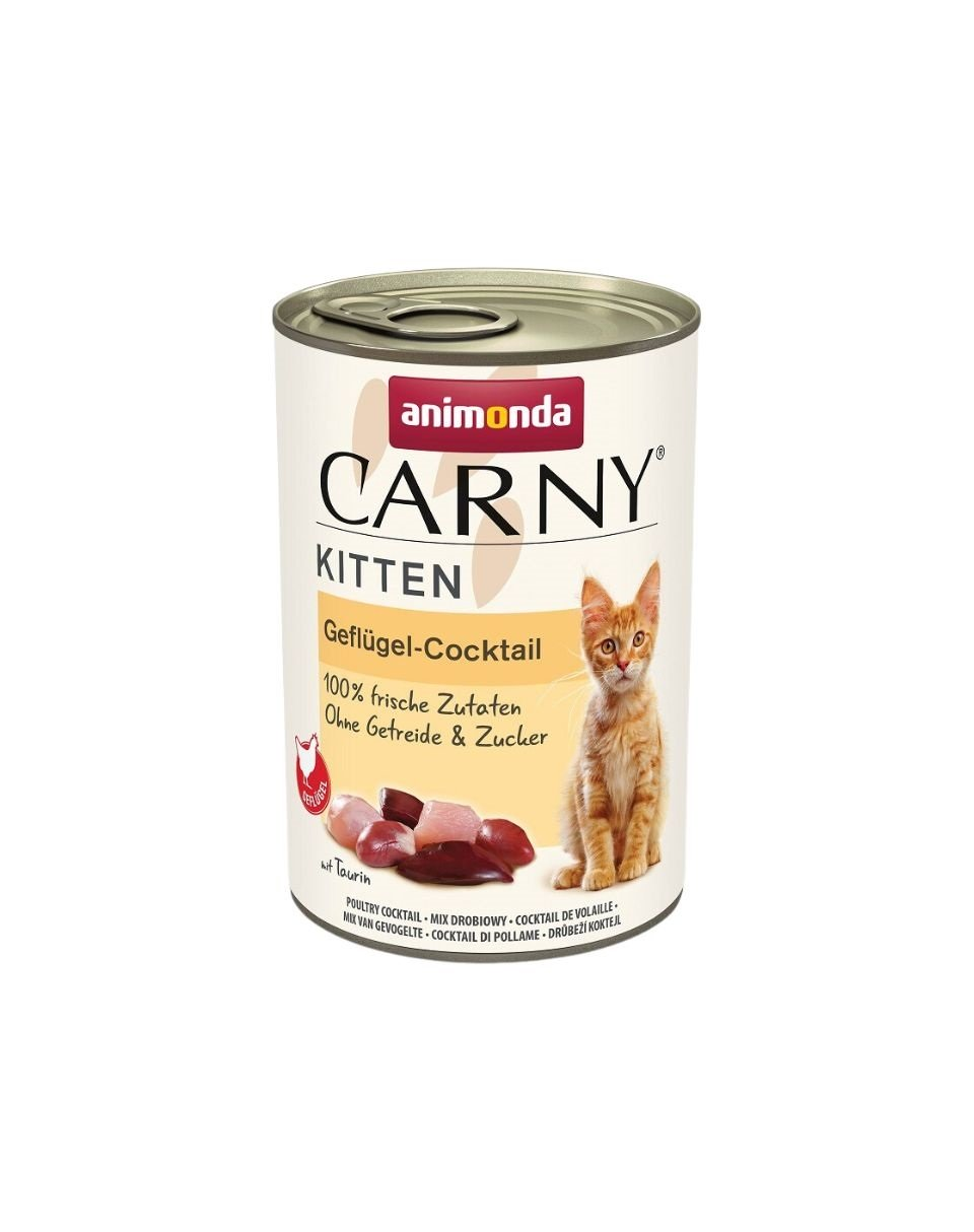 Carny Kitten Poultry Cocktail este ideal pentru cerințele nutriționale alepisicuțelor încreștere în primul an de viață.