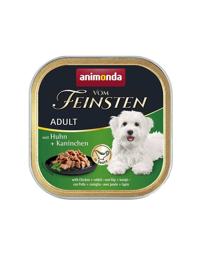 Vom Feinsten Adult în sos cu pui și iepure este o hrană completă și echilibrată pentru câinii adulți cu vârsta între 1 și 6 ani, care conține bucăți fragede de carne într-un sos aromat. Ingredientele atent selecționate asigură un gust deosebit și o alimentație nutritivă de calitate.