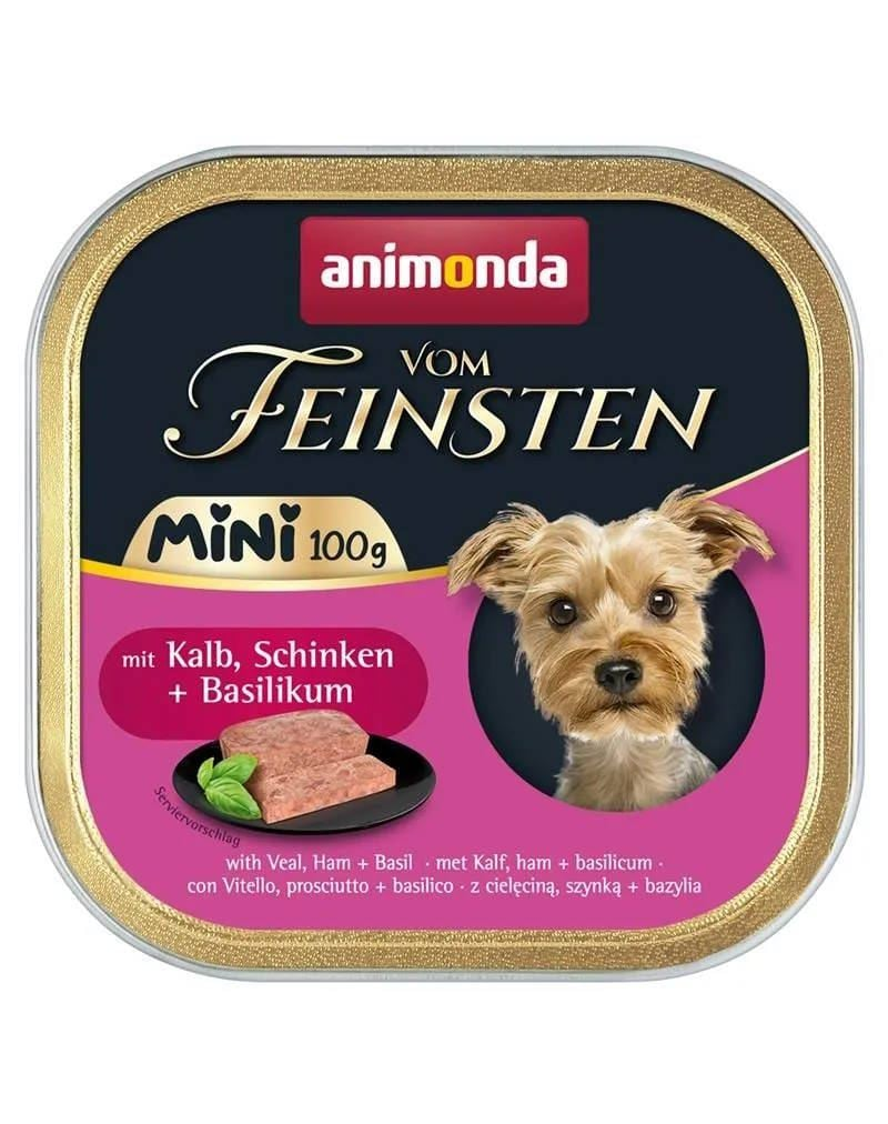 ANIMONDA Vom Feinsten Mini hrană umedă pentru câini de talie mică cu vițel, șuncă și busuioc 100 g