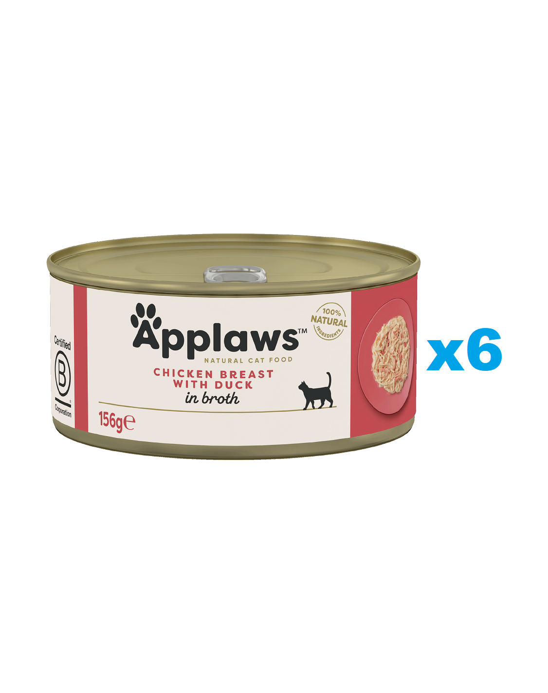 Piept de pui 70%, Rață 5%, Orez 1%, Bulion de pui 24%.