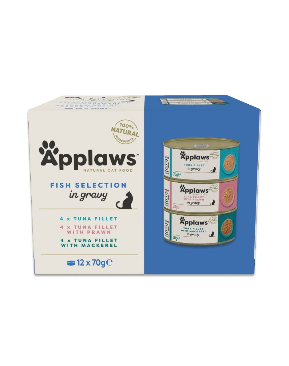 APPLAWS Cat Adult Fish Selection in Gravy este un multipack de hrană umedă complementară, naturală, destinat pisicilor adulte. Rețetele sunt bazate pe filet de ton, cu adaos de creveți sau macrou, servite într-un sos fin și aromat (gravy), care crește palatabilitatea și contribuie la hidratarea zilnică.
