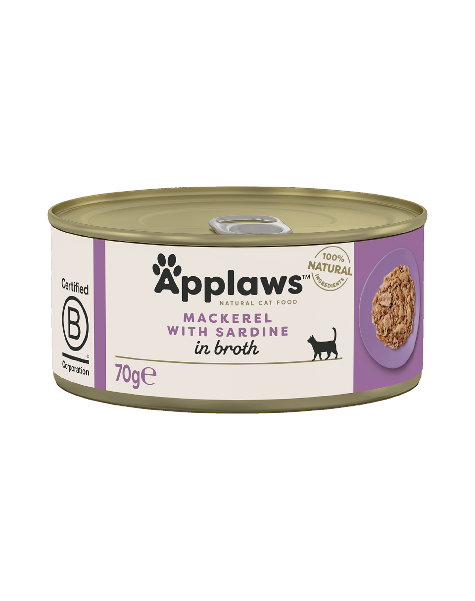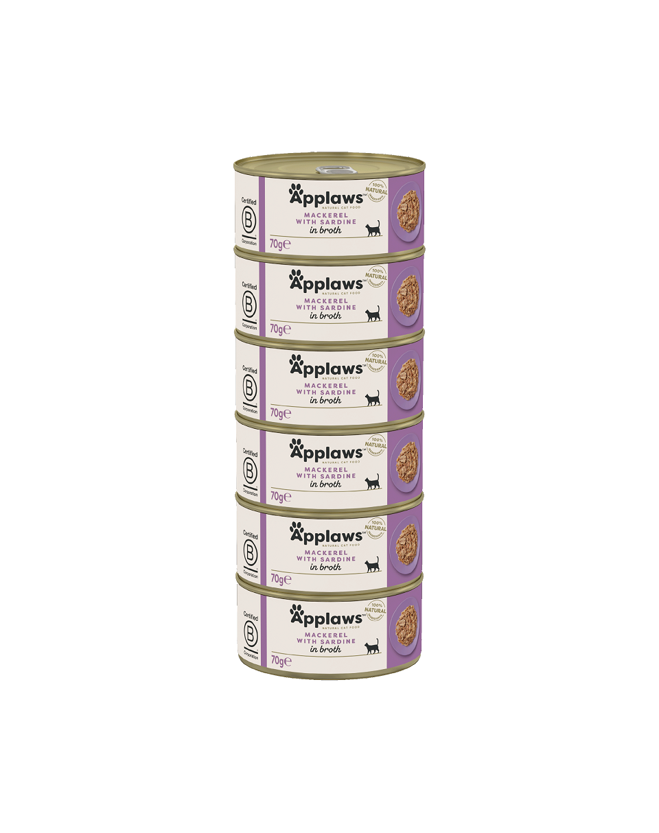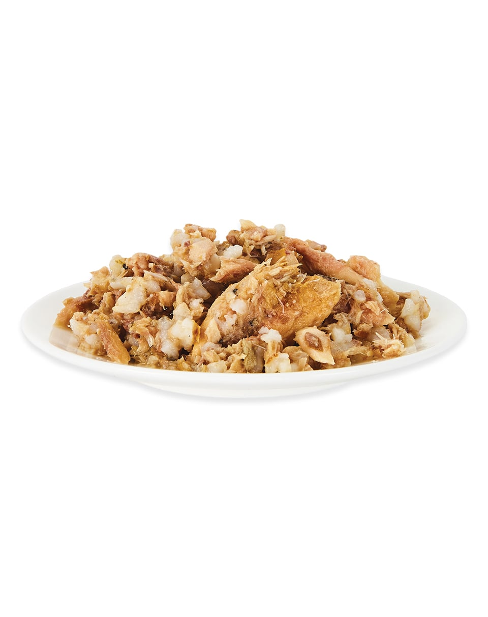 Macrou 70%, Sardine 5%, sos de pește 24%, orez 1%. Fără aditivi