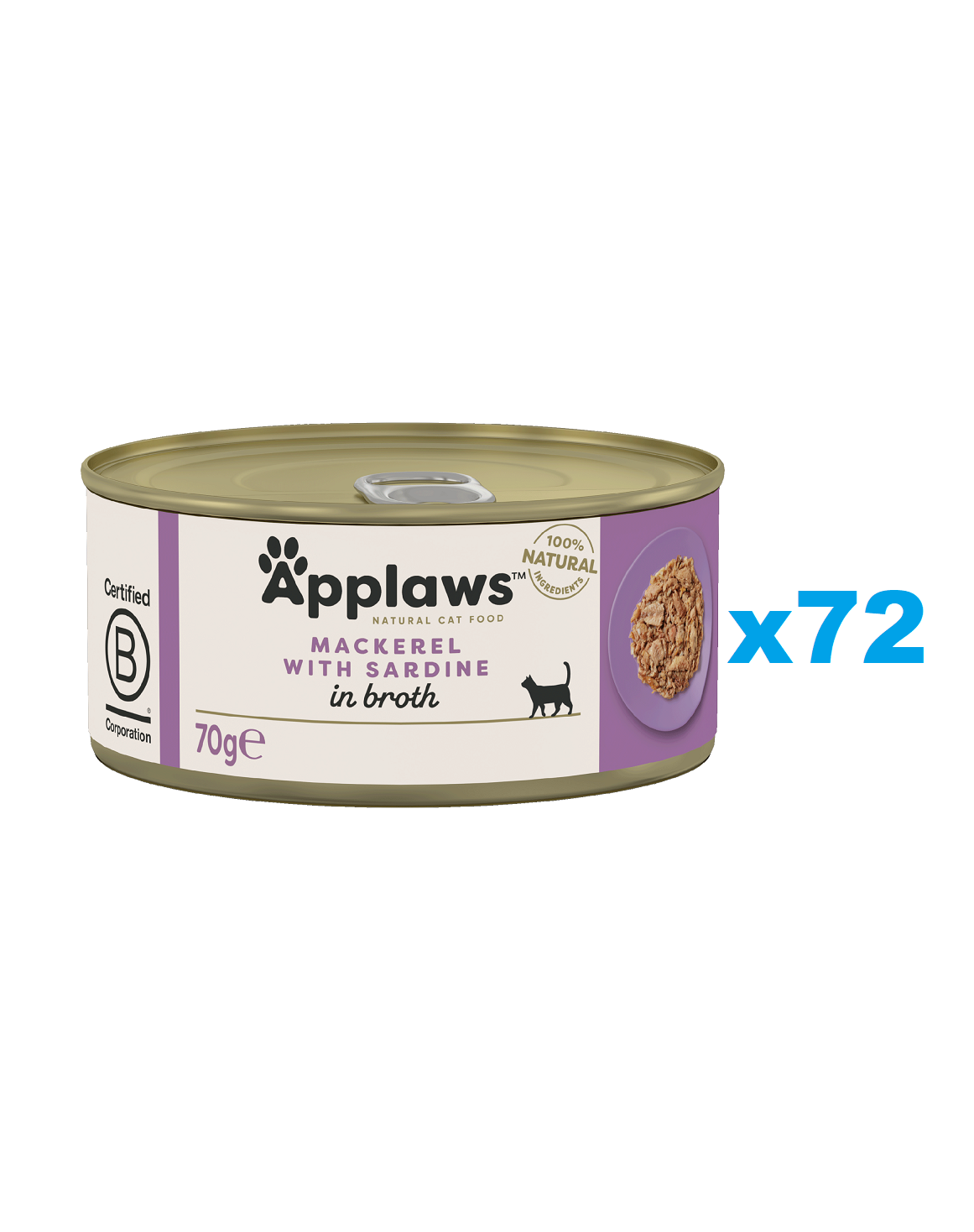 Macrou 70%, Sardine 5%, sos de pește 24%, orez 1%. Fără aditivi