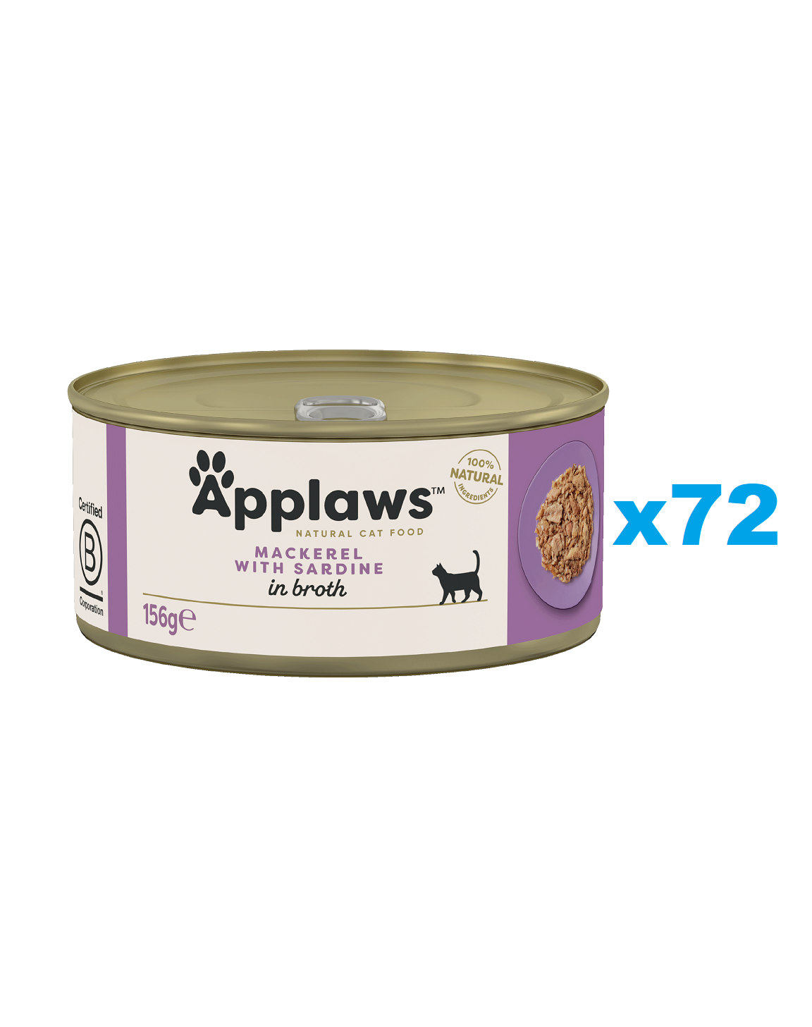 APPLAWS Cat Adult Mackerel with Sardine in Broth Pachet mancare pisici, cu macrou si sardine in sos 72x156 g