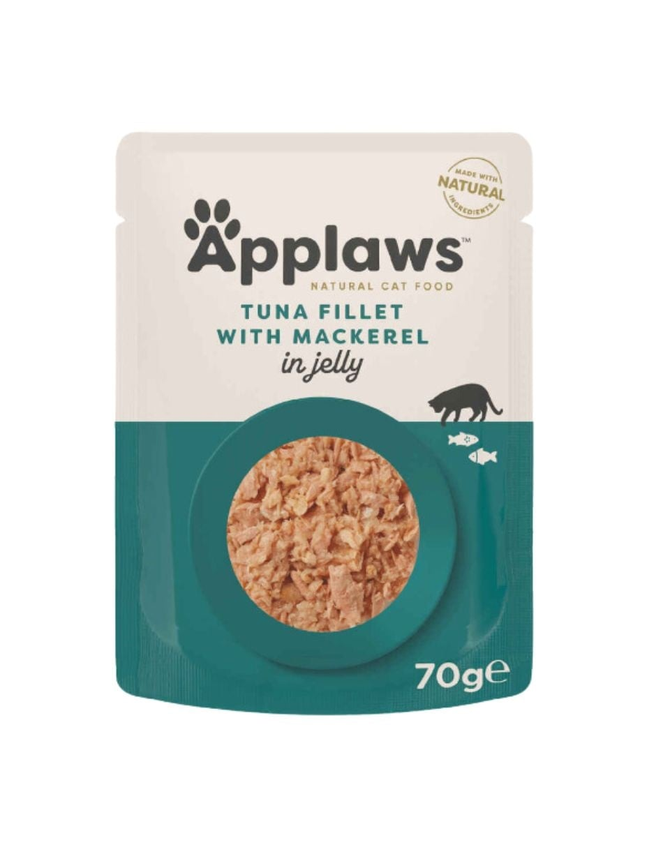 APPLAWS Cat Pouch Tuna with Mackerel in Jelly este o hrană naturală și complementară pentru pisici adulte. Conține doar ingredientele enumerate mai jos: