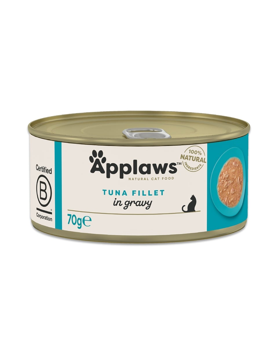 APPLAWS Cat Adult Tuna in Gravy este o hrană umedă complementară, naturală, destinată pisicilor adulte. Rețeta conține filet delicat de ton, servit într-un sos ușor și aromat, care sporește palatabilitatea și contribuie la aportul de lichide.