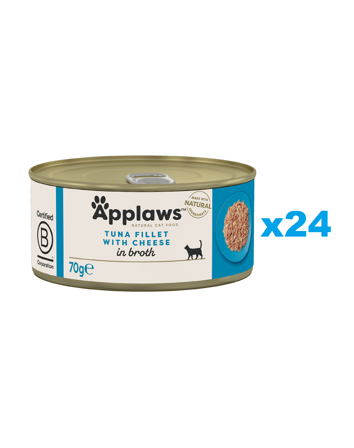Hrană complementară pentru pisici, caracterizată prin ingrediente naturale, de înaltă calitate. Bucăți de file de ton scufundate în bulion de pește. Se adaugă 6% brânză și 1% orez.