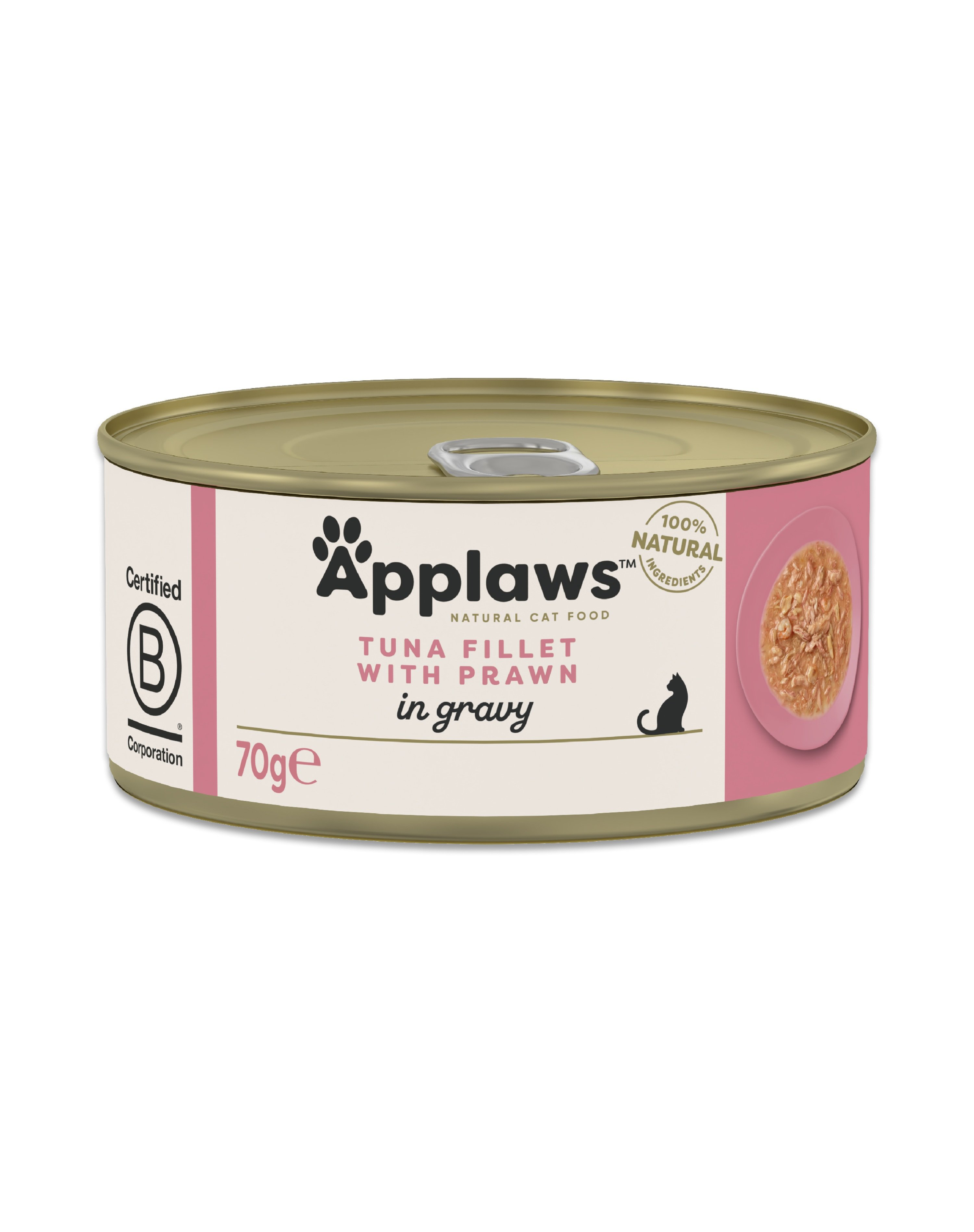 APPLAWS Cat Adult Tuna with Prawn in Gravy este o hrană umedă complementară, naturală, destinată pisicilor adulte. Rețeta combină filet delicat de ton cu creveți aromați, serviți într-un sos ușor și apetisant, care sporește palatabilitatea și contribuie la aportul zilnic de lichide.