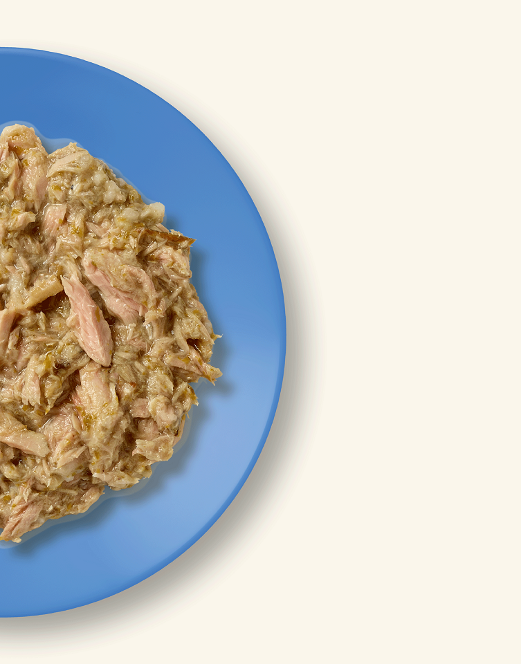 Ton 60%, Decoct de pește 28%, Alge 5%, Anșoa 5%, Orez 2%.