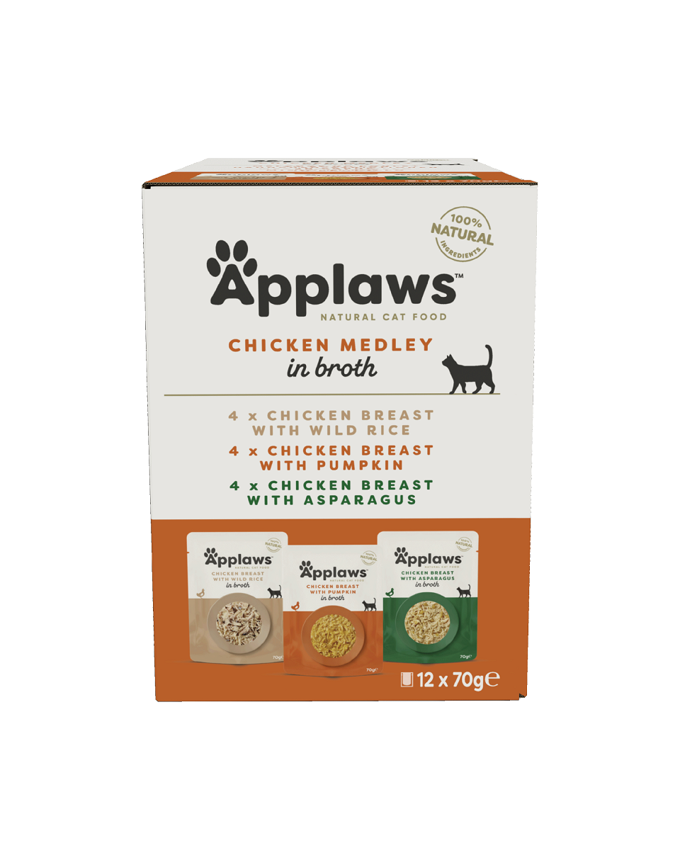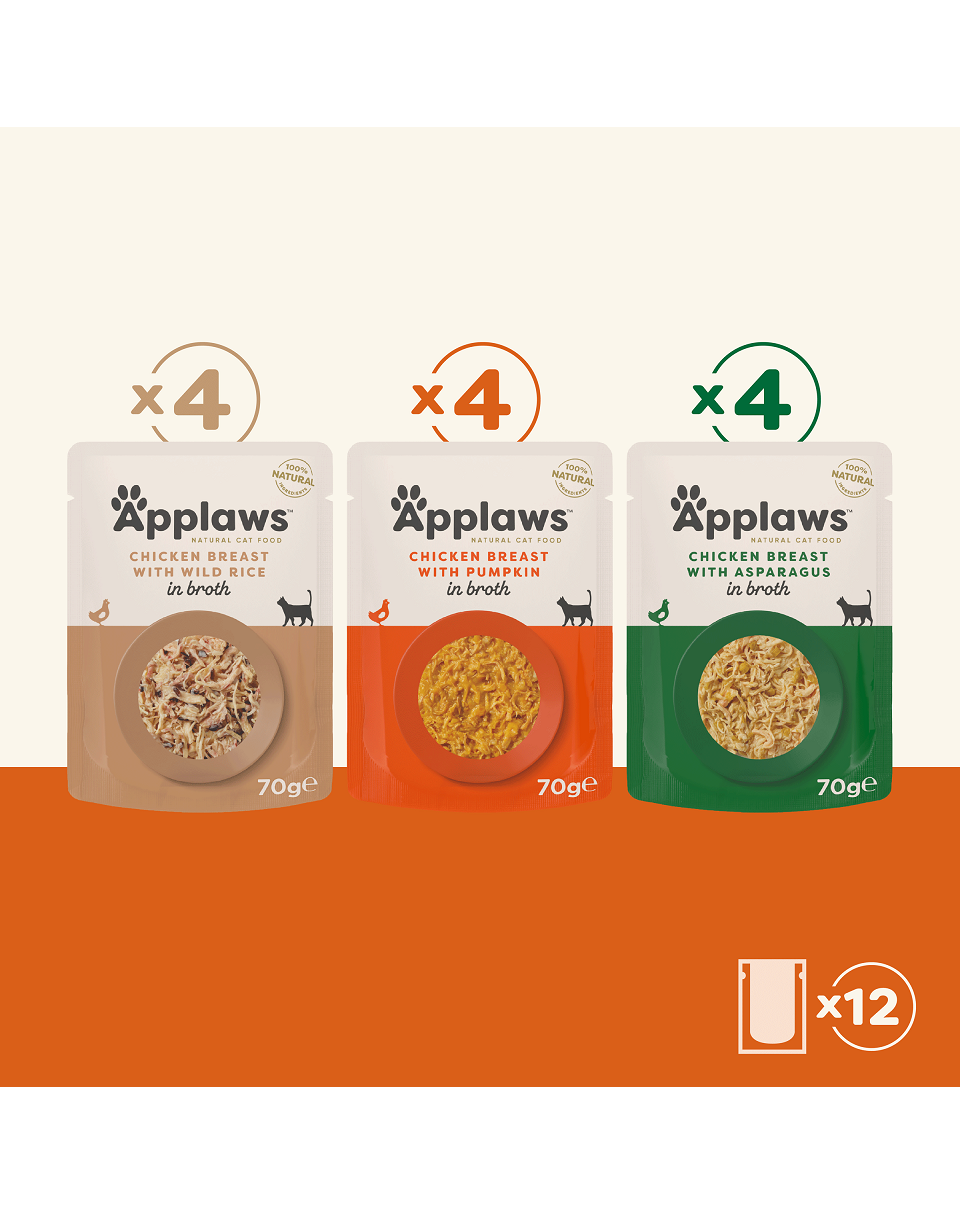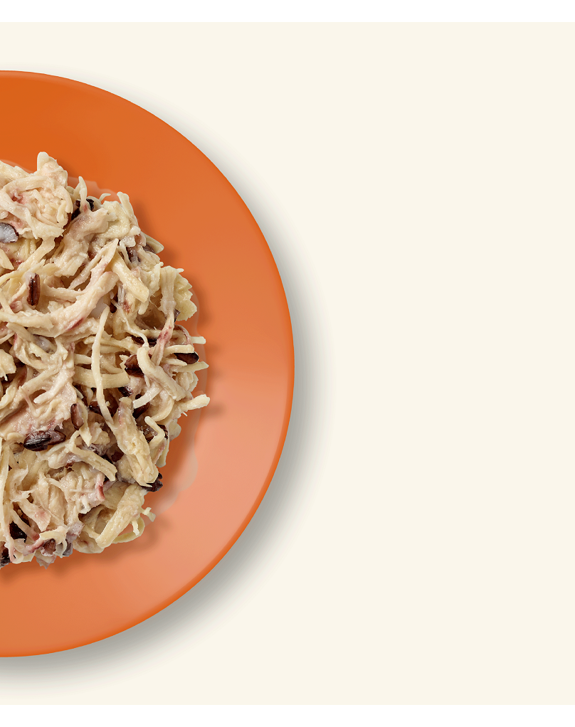 4x Pui și Orez sălbatic 70gIngrediente:Pui 75%, Bulion de pui 23%, Orez 2%