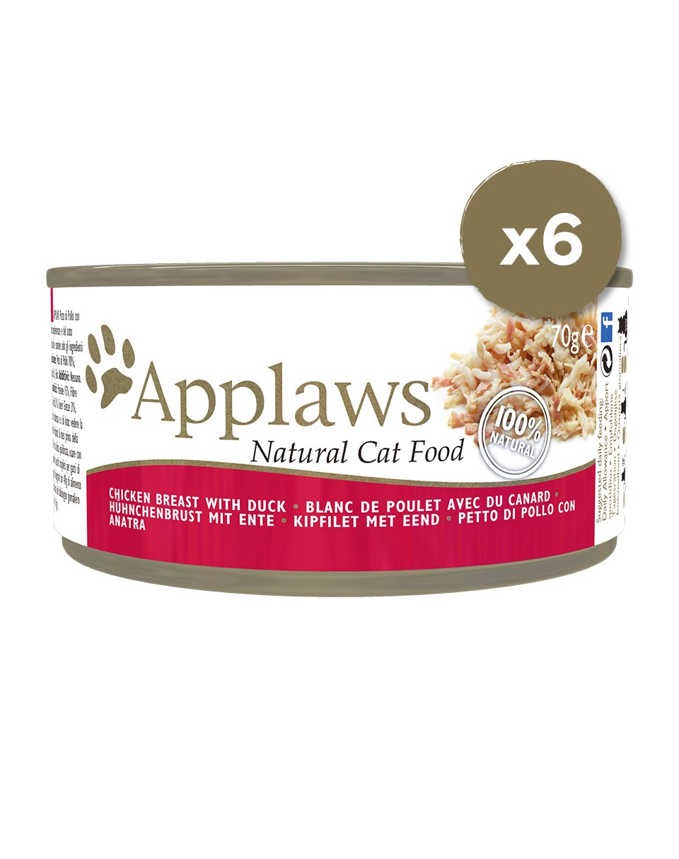 Applaws Cat Adult Bol Piept de Pui si Rata nu contine sub-produse animale sau cereale ci doar bucati de piept de pui (55%) carne de rata apetisanta si supa de pui. Ingredientele de calitate complet naturale ofera savoare mancarii facand-o o hrana sanatoasa apreciata de orice pisica oricat de mofturoasa.