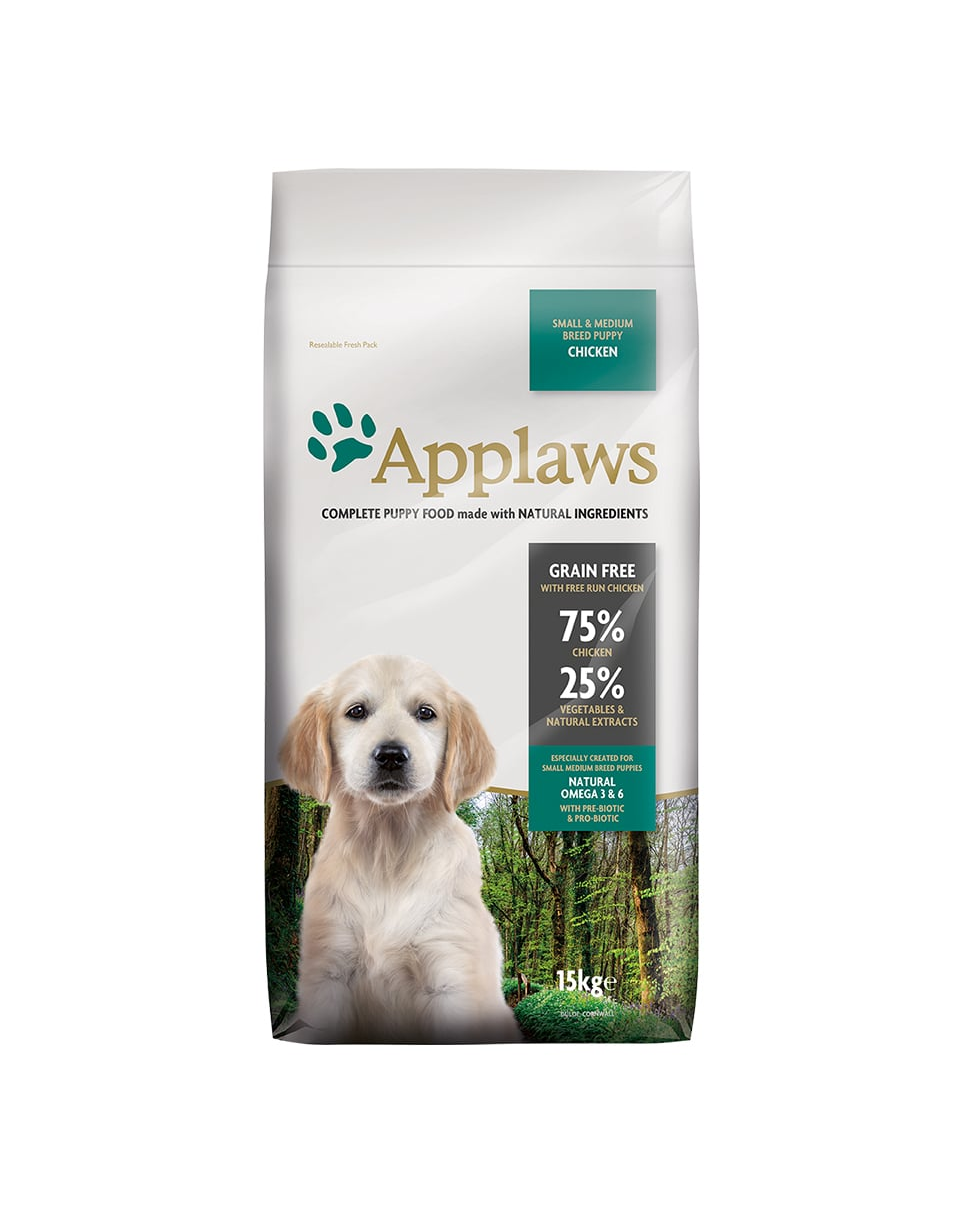 Mâncare completă, fără cereale, pentru puii de rase mici și mijlocii.