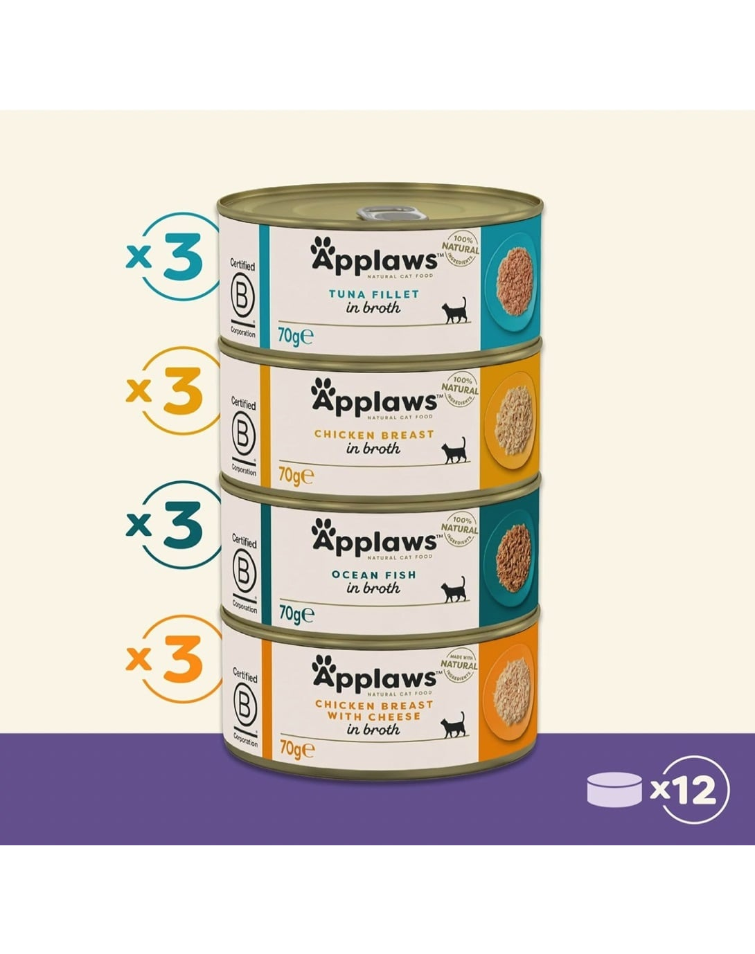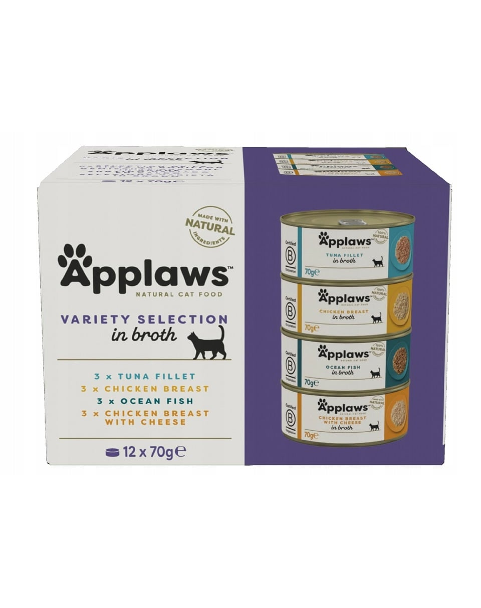 Un set de 12 cutii cu diferite arome - piept de pui și brânză, piept de pui, pește oceanic și ton. Hrana este compusă numai din ingrediente naturale, enumerate în formulare. Nu există alte ingrediente inutile. Cel puțin 70% din compoziție este carne. Puiul oferă proteine animale cu cel mai bun și mai favorabil profil de aminoacizi pentru pisici.