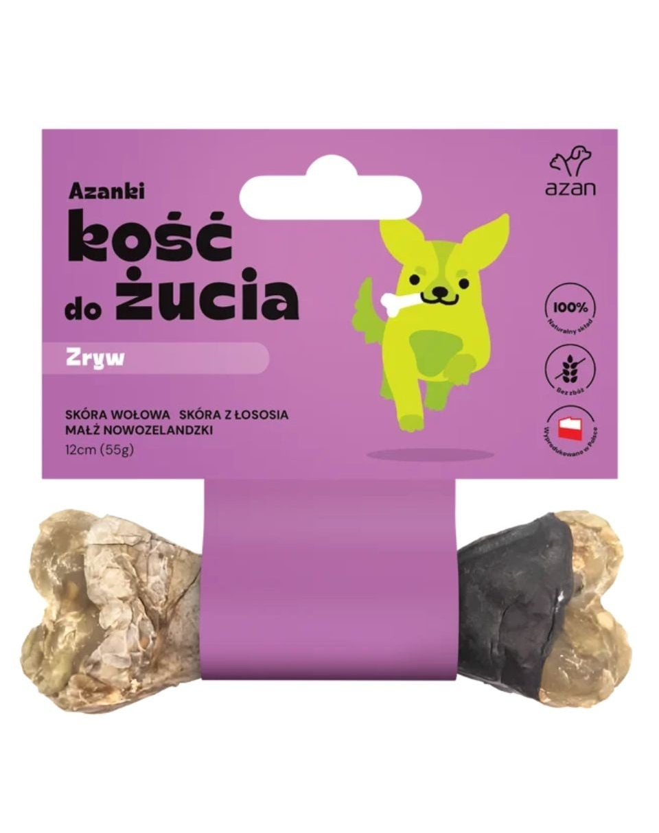 Osul de ros AZANKI ZRYW este un snack natural, conceput pentru a susține sănătatea articulațiilor și mobilitatea câinilor adulți de talie mică și medie. Produsul combină ingrediente de înaltă calitate, atent selectate, care oferă beneficii duble – satisfacția instinctului natural de ros și sprijinul complex pentru articulații, oase și cartilaje.