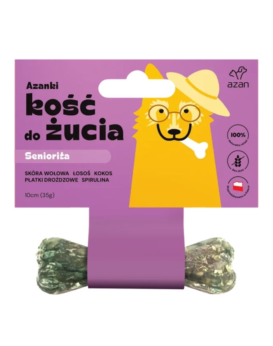 Osul de ros AZANKI SENIORITA este un snack natural, creat special pentru câinii seniori din toate rasele. Formula sa unică combină ingrediente premium care sprijină mobilitatea, digestia, imunitatea, funcțiile cognitive și starea generală de bine a câinilor vârstnici, oferind în același timp plăcerea naturală a rosului.