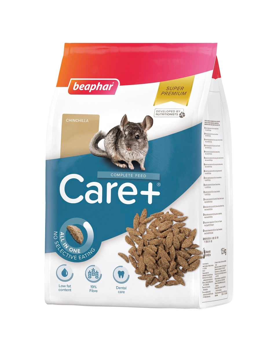Chinchilele au un tract digestiv extrem de sensibil. Ele au nevoie de o dietă foarte săracă în grăsimi și cu o concentrație semnificativă de carbohidrați de balast. Care+ oferă, de asemenea, proteine cu o valoare biologică ridicată pentru o creștere optimă.