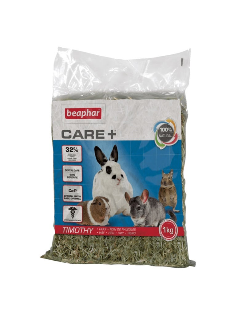 Fânul pentru rozătoare Beaphar Care+ conține minerale, precum fosfor și calciu, ceea ce îl face un adaos excelent la dieta animalului dumneavoastră de companie.