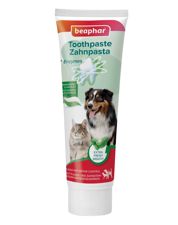 Spune adio plăcii bacteriene și respirației neplăcute! Pasta de dinți Beaphar Mint & Parsley oferă o îngrijire completă pentru igiena orală a câinilor și pisicilor, combinând enzime active cu ulei de mentă și extract de pătrunjel pentru un efect dublu: curățare eficientă și respirație proaspătă.