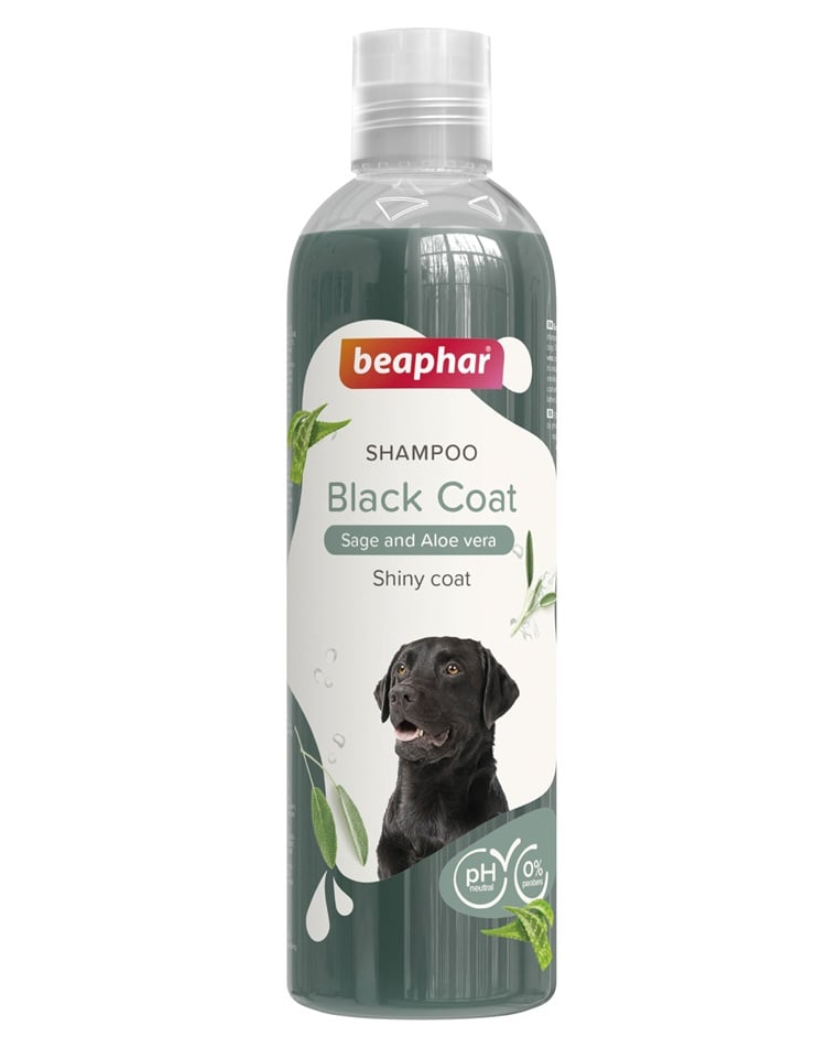 Șampon dedicat câinilor cu blană neagră și foarte închisă. Beaphar Shampoo Black Dog este un șampon delicat, cu efect de curățare eficient, îmbogățit cu aloe vera și salvie, creat special pentru câinii cu blană neagră sau foarte închisă. Formula cu pH neutru, testată dermatologic, este potrivită și pentru câinii cu piele sensibilă.
