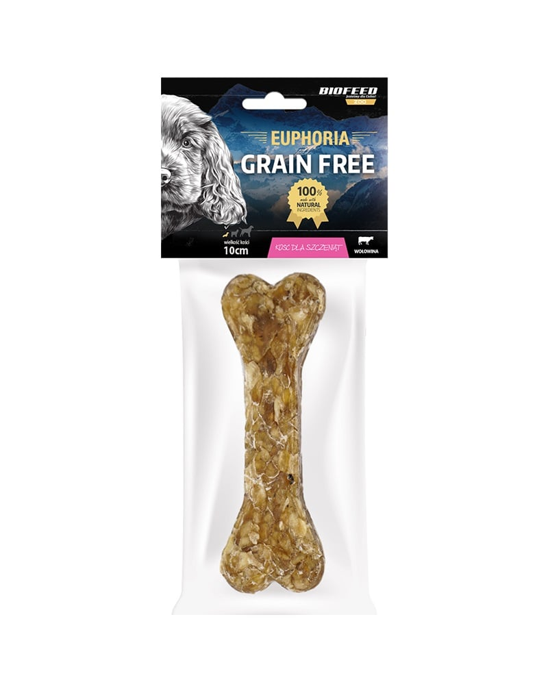 Os natural pentru căței de la 4 luni. Osul de ros BIOFEED EUPHORIA Grain Free Junior Bone este o gustare naturală, creată special pentru căței începând cu vârsta de 4 luni. Realizat din ingrediente atent selecționate, 100% naturale, acest os contribuie la satisfacerea instinctului de ros și la menținerea sănătății dinților. Textura sa rezistentă oferă distracție de durată și ajută la curățarea dinților în mod natural.