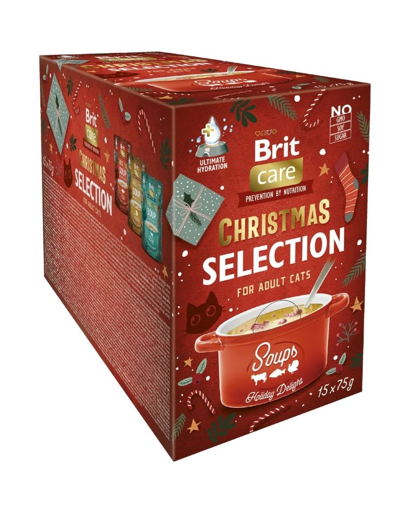 Brit Care Cat Christmas Soup Multipack este un set festiv de supe ușoare, create ca hrană complementară pentru pisicile adulte, special concepute pentru perioada sărbătorilor. Pachetul conține 15 plicuri aromate, care combină carne delicată, legume atent selecționate și ierburi aromatice, rezultând un preparat natural, ușor digerabil și cu un conținut ridicat de lichide, ideal pentru susținerea hidratării zilnice a pisicii.