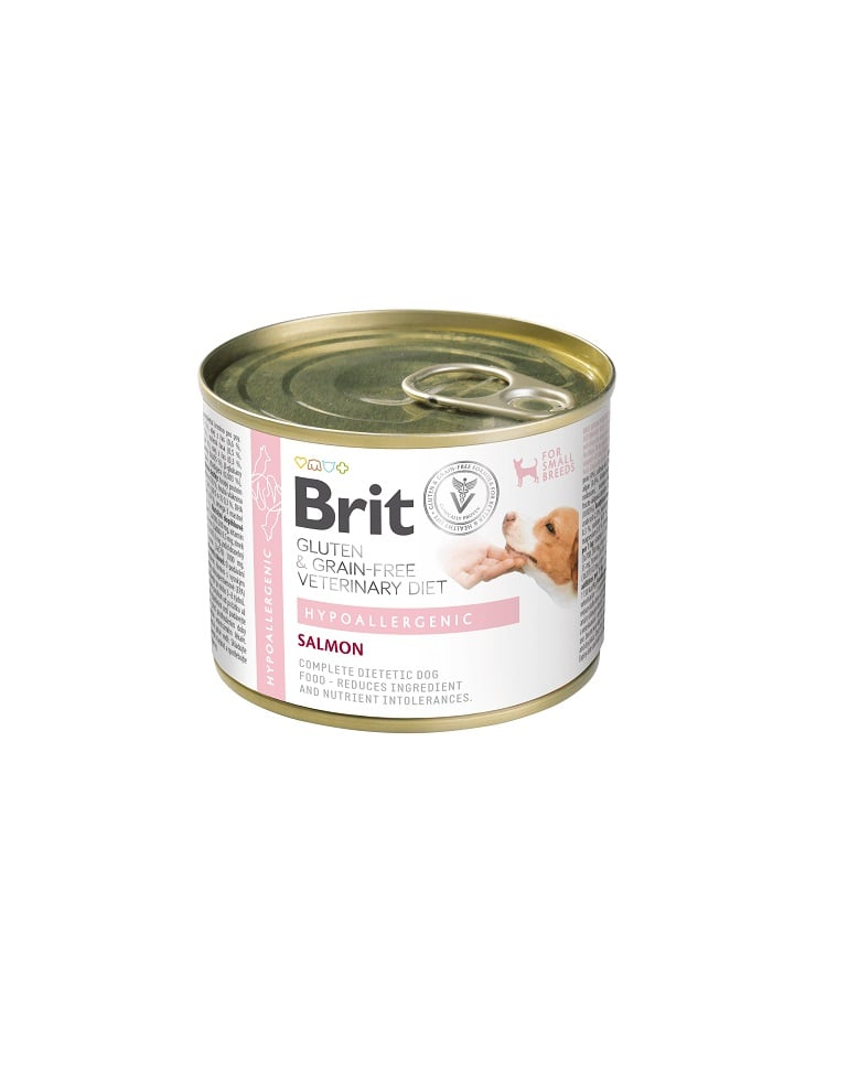 Hrană dietetică completă pentru câini cu alergii sau intoleranță alimentară. BRIT Veterinary Diet Grain Free Hypoallergenic – somon cu mazăre este o hrană completă, fără cereale, destinată câinilor cu piele sensibilă, alergii alimentare sau tulburări digestive. Formula hipoalergenică, bazată pe somon (60%) și mazăre verde, oferă proteine de înaltă calitate, ușor digerabile, și o sursă naturală de fibre, vitamine și minerale.