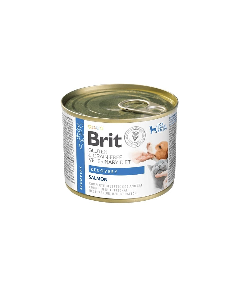 BRIT Veterinary Diet Grain Free Recovery Somon și Ficat de Pui este o hrană umedă completă, fără cereale, destinată câinilor și pisicilor aflați în perioada de convalescență. Formula sa unică, bogată în proteine și energie, a fost creată pentru a sprijini regenerarea organismului după intervenții chirurgicale, boli sau perioade de stres și pierdere în greutate.