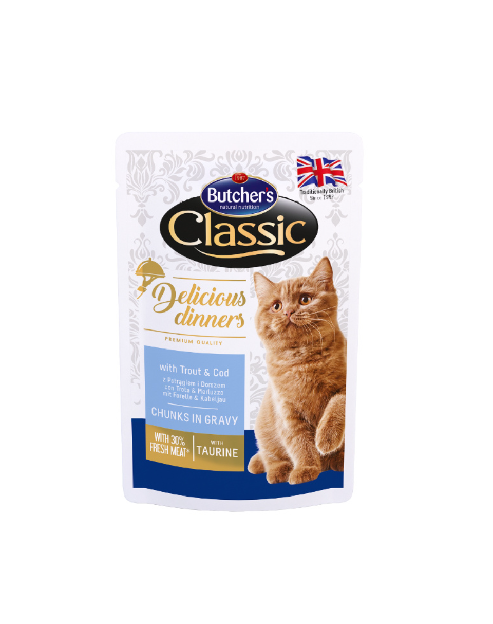 Hrană umedă completă cu carne proaspătă, pentru pisici adulte. În fiecare zi, aceasta oferă pisicii porția necesară de vitamine și minerale. Conține ingrediente proaspete și de înaltă calitate.