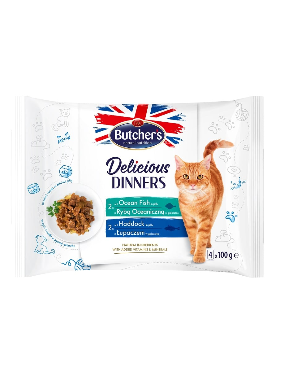 Această hrană completă, servită sub formă de bucăți suculente cu pește oceanic de cea mai bună calitate și eglefin (un pește de mare din familia codului) într-o gelatină delicioasă, vă va încânta cu siguranță animalul de companie. Bazată pe ingrediente de origine naturală, rețeta este îmbogățită cu vitaminele și mineralele de care pisica dumneavoastră are nevoie pentru o viață sănătoasă și fericită.