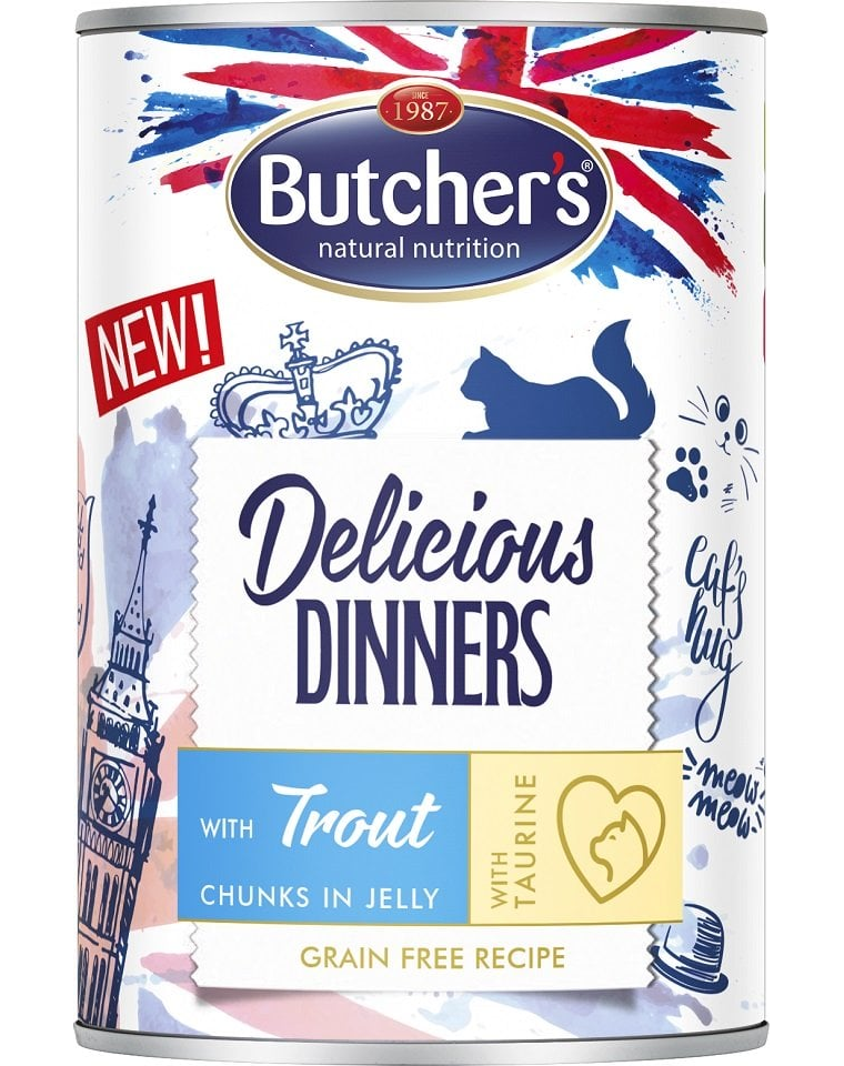 Hrană completă, bogată în carne, servită sub formă de bucăți suculente cu păstrăv de calitate superioară în jeleu delicios. Bazată pe ingrediente de origine naturală, rețeta este îmbogățită cu vitaminele și mineralele de care pisica dumneavoastră are nevoie pentru o viață sănătoasă și fericită.