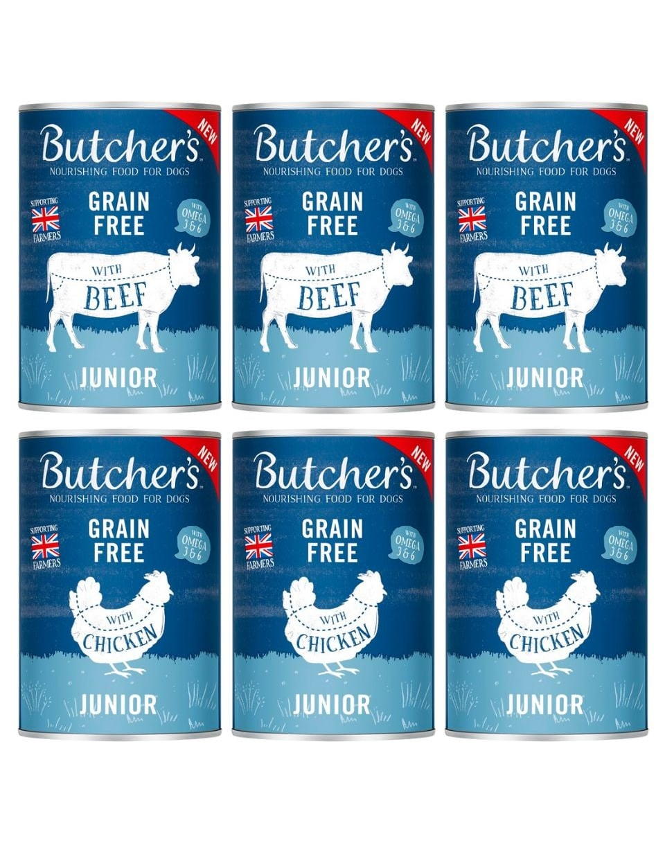 Butcher's Original Junior sunt alimente fără cereale, dezvoltate având în vedere nevoile nutriționale ale cățeilor. Produsele din această linie sunt concepute pentru a le oferi cățeilor cel mai bun start în viața lor de adulți. Toate produsele sunt fabricate din ingrediente naturale și sunt ambalate în ambalaje ecologice.