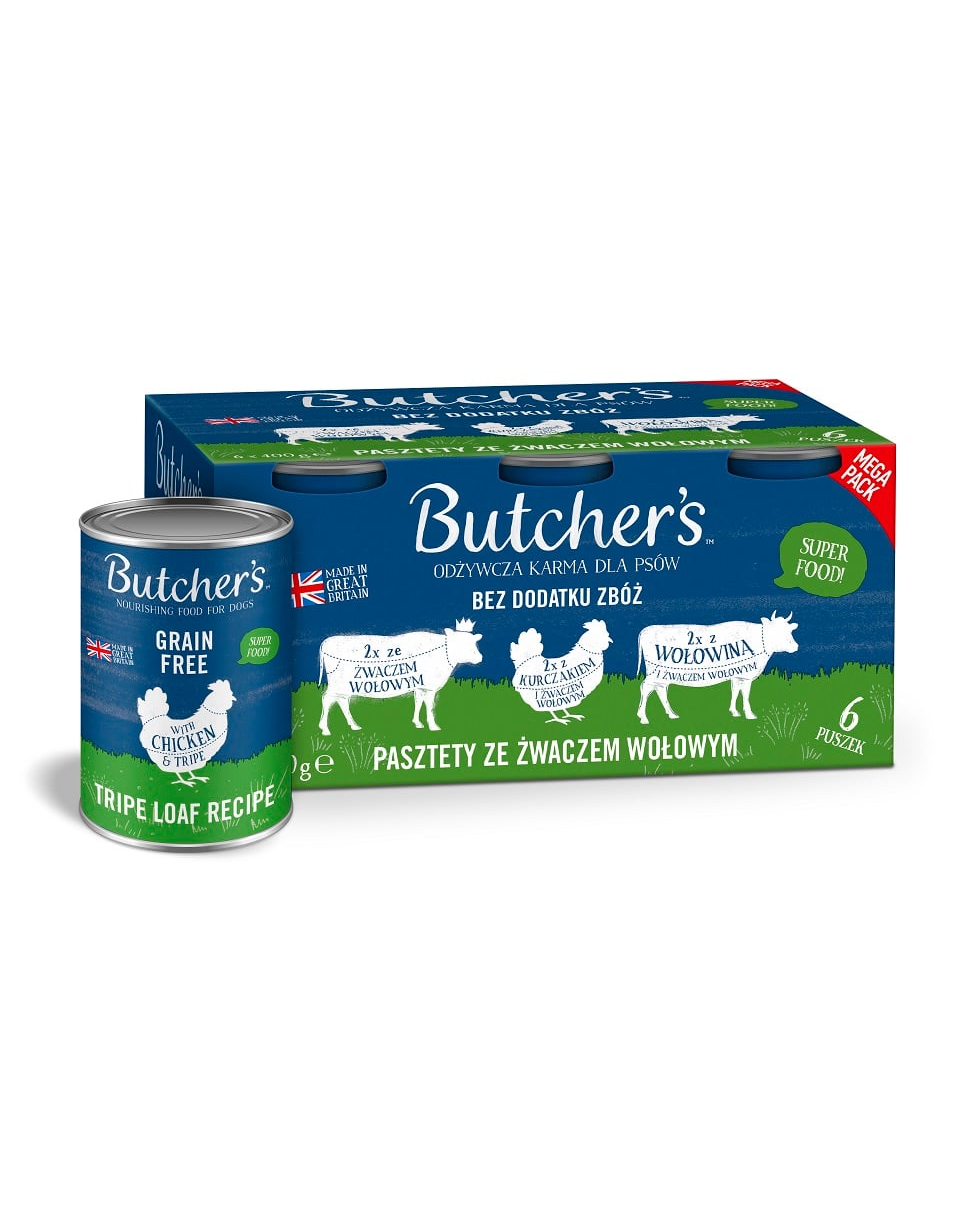 BUTCHR'S Original Tripe este o hrană gustoasă pentru câini care va satisface chiar și cele mai exigente gusturi. Acest pate delicat cu rumen de vită este o masă completă care îi va oferi animalului dvs. de companie toți nutrienții de care are nevoie.