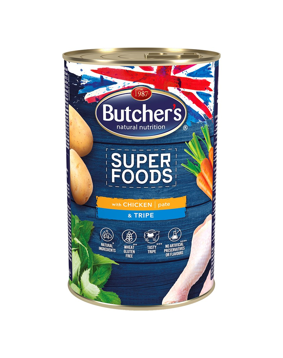 Butcher’s Super Foods este un aliment natural îndrăgit de câini.
