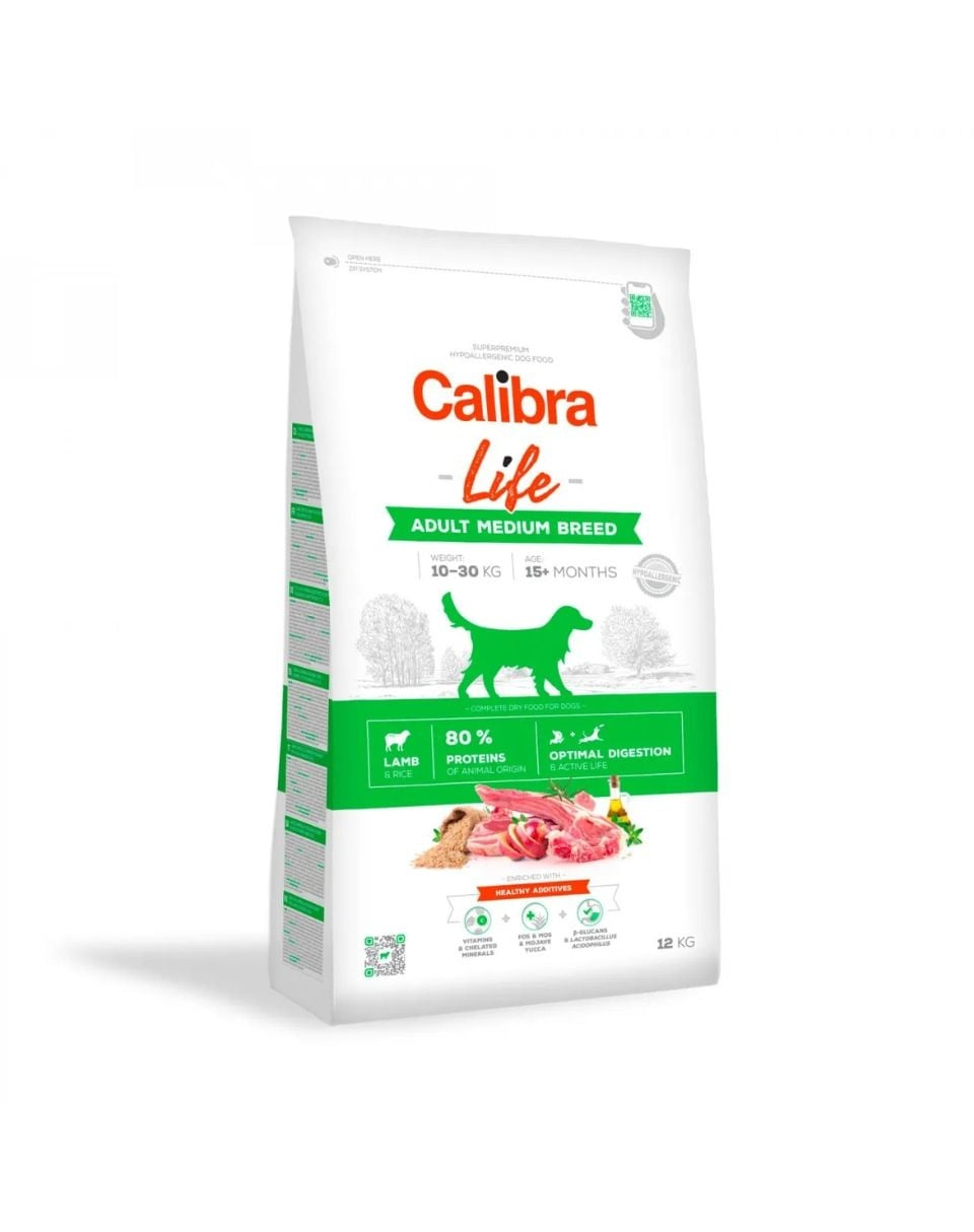 Hrană completă cu miel pentru câini adulți de talie medie (10–30 kg). Calibra Dog Life Adult Medium Breed Lamb este o hrană uscată premium, completă și echilibrată, destinată câinilor adulți de talie medie. Rețeta se bazează pe miel ca sursă principală de proteine animale și are o formulă hipoalergenică, cu conținut redus de cereale – singura cereală utilizată fiind orezul.