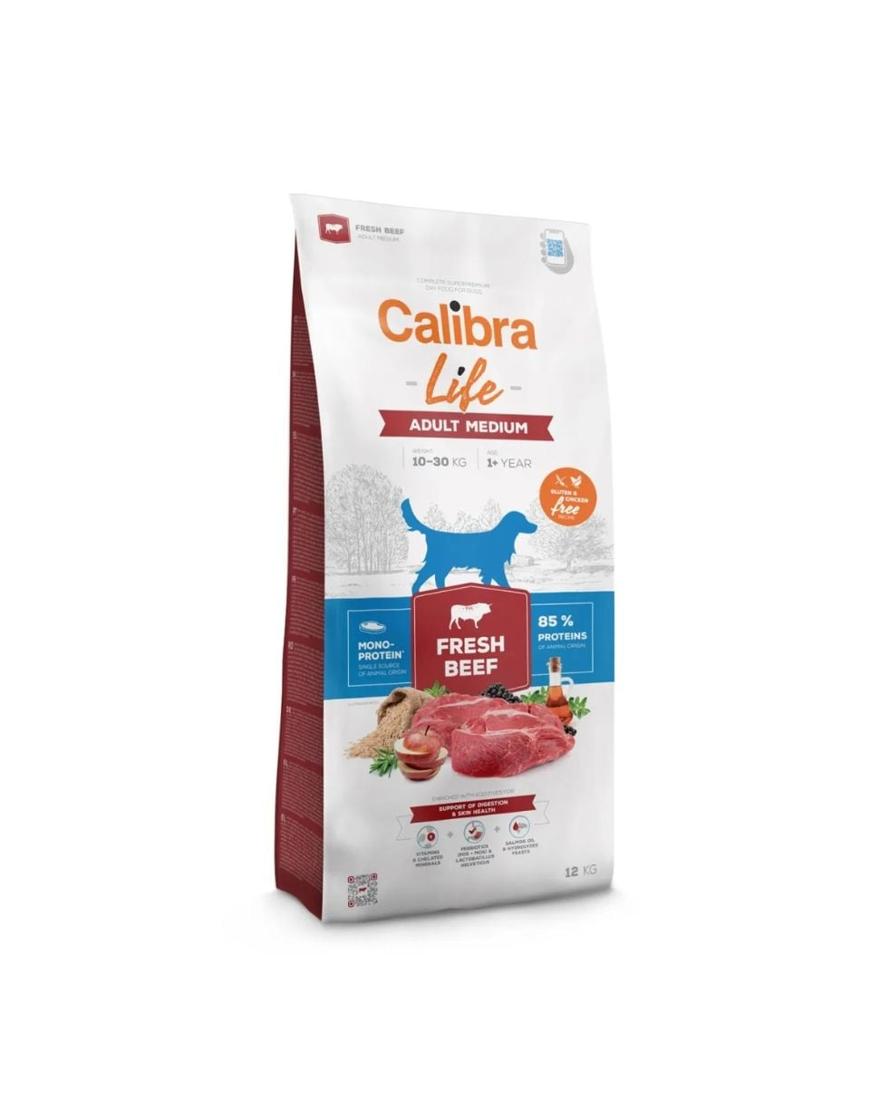 Calibra Dog Life Adult Medium Fresh Beef este o hrană completă, monoproteică, destinată câinilor adulți de talie medie (10–30 kg), bazată exclusiv pe proteine din vită, inclusiv carne proaspătă de vită. Adăugarea orezului asigură o digestie ușoară, fiind potrivită și pentru câinii cu tract digestiv sensibil.