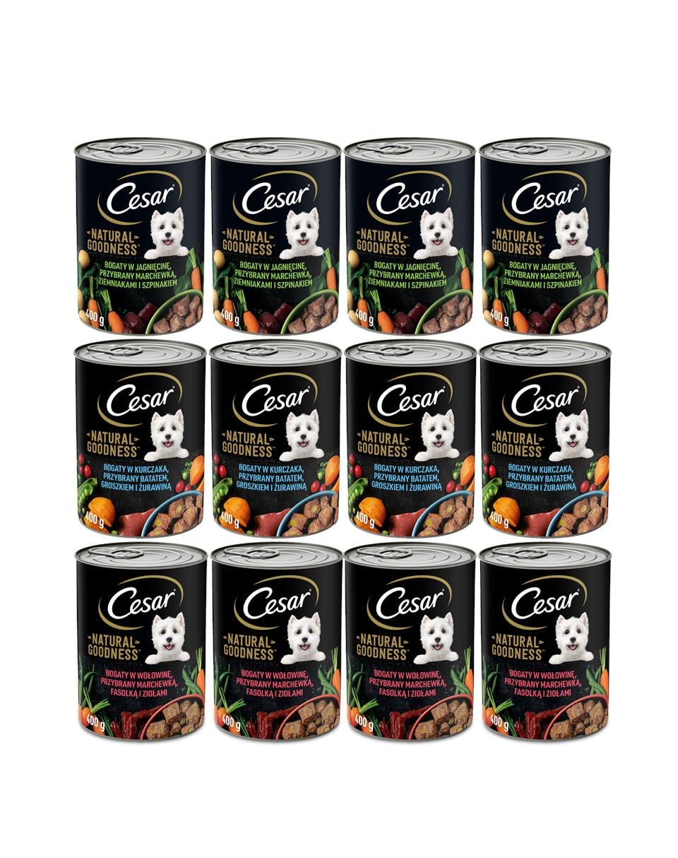 Vă recomandăm să hrăniți atât cu hrană umedă completă pentru câini Cesar®, cât și cu hrană uscată pentru câini.