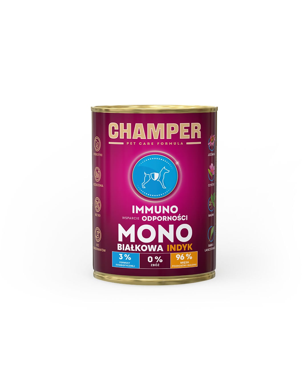 CHAMPER PET CARE FORMULA – IMMUNO Hrană umedă completă, monoproteică pentru câini de toate rasele
