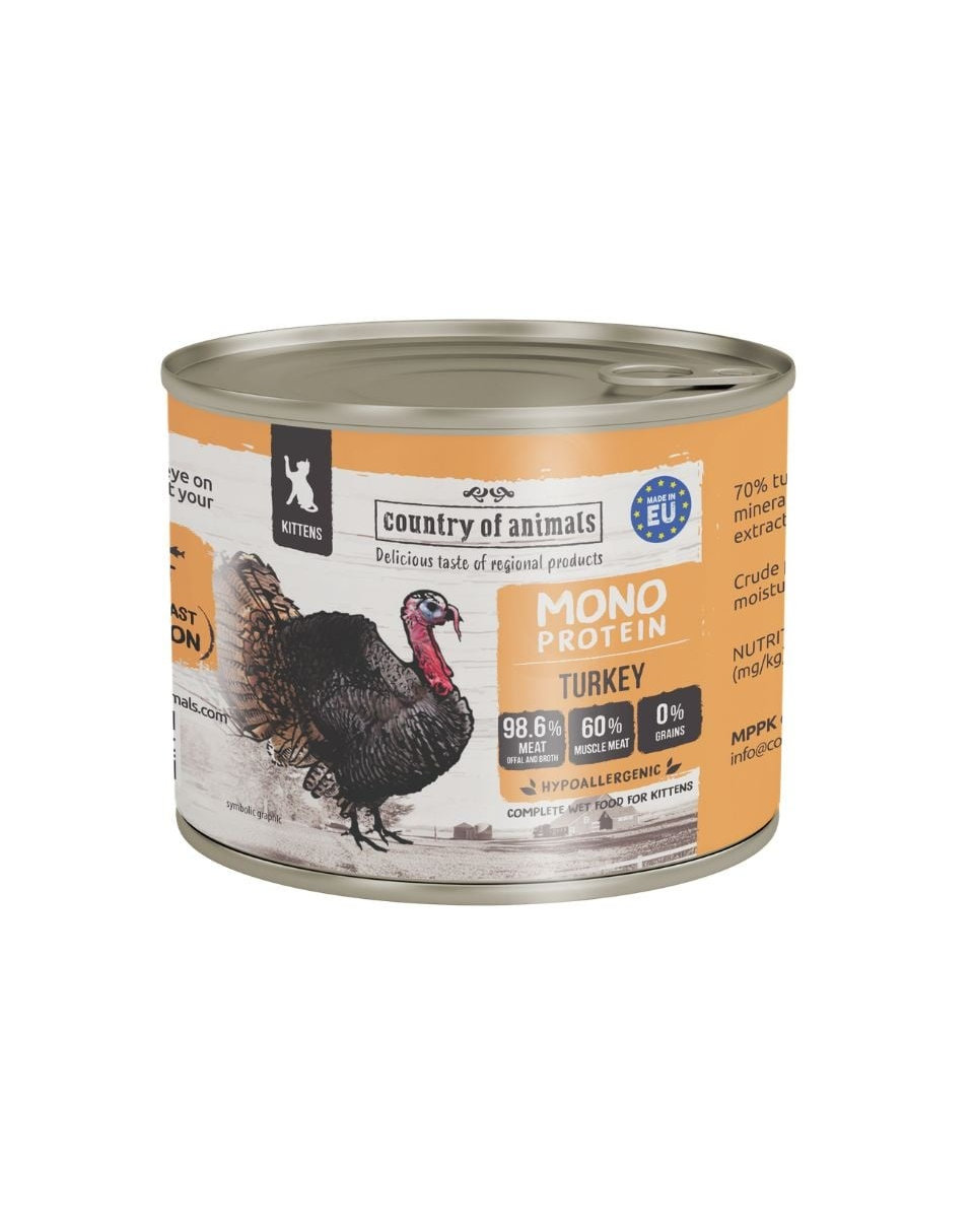 COUNTRY OF ANIMALS hrană umedă monoproteică cu curcan pentru pisoi 200 g