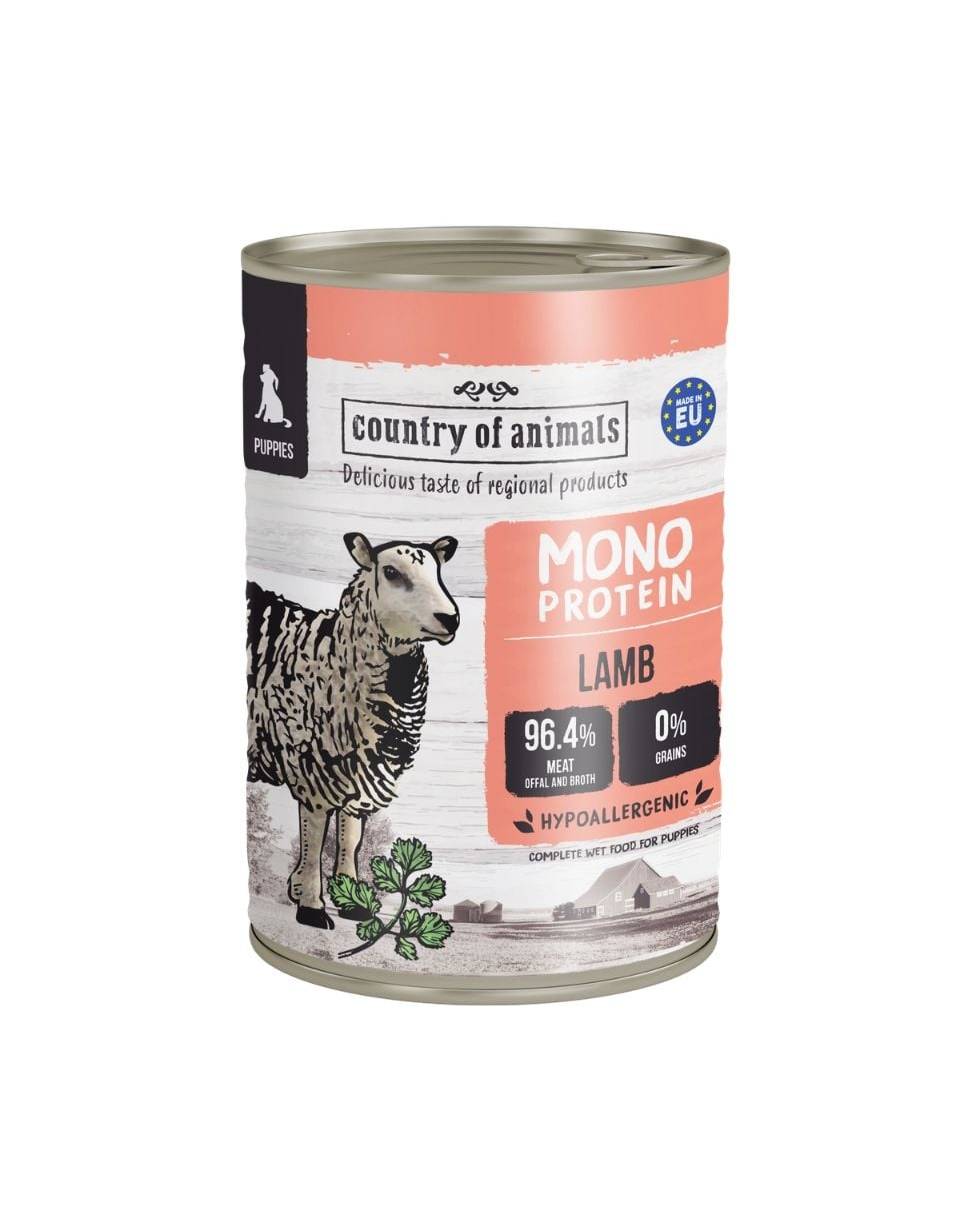 Hrană umedă monoproteică Country of Animals este mai mult decât o masă obișnuită pentru cățelul tău. Este un adevărat festin, în care gustul excepțional se îmbină cu o compoziție sănătoasă, menită să sprijine sănătatea și sistemul digestiv delicat al câinelui.