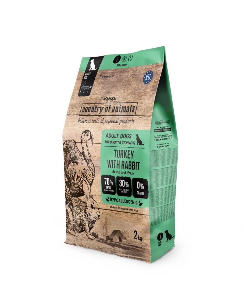 COUNTRY OF ANIMALS hrană uscată cu curcan și iepure pentru câini 2 kg