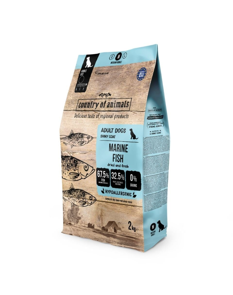 COMPOZIȚIE: Coregon proaspăt (17%), hering deshidratat (17%), somon deshidratat (17%), ulei de somon (11,5%), mazăre, mazăre decorticată, fulgi de cartofi deshidratați, ficat de pui hidrolizat (5%), drojdie de bere uscată (1%), semințe de in, pulpă de sfeclă uscată (fără zahăr), lignoceluloză (din molid), minerale, cicoare uscată, MOS (mananoligozaharide), pere uscate, glucozamină, sulfat de condroitină, extracte vegetale (rozmarin, citrice, turmeric, eugenia, yucca Mojave).