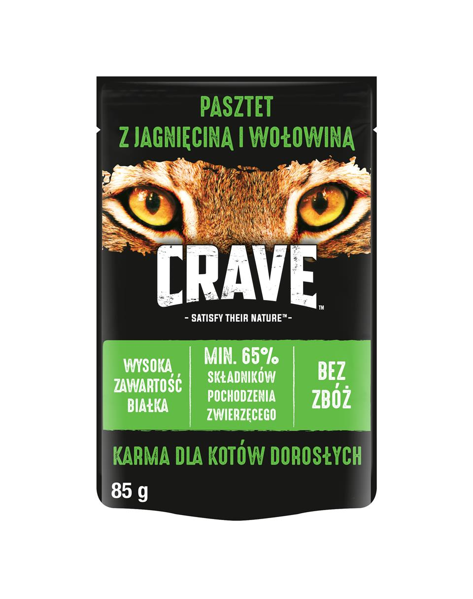 Pateul de miel și carne de vită CRAVE ™ fără cereale este un aliment excelent complet și echilibrat pentru o pisică adultă.