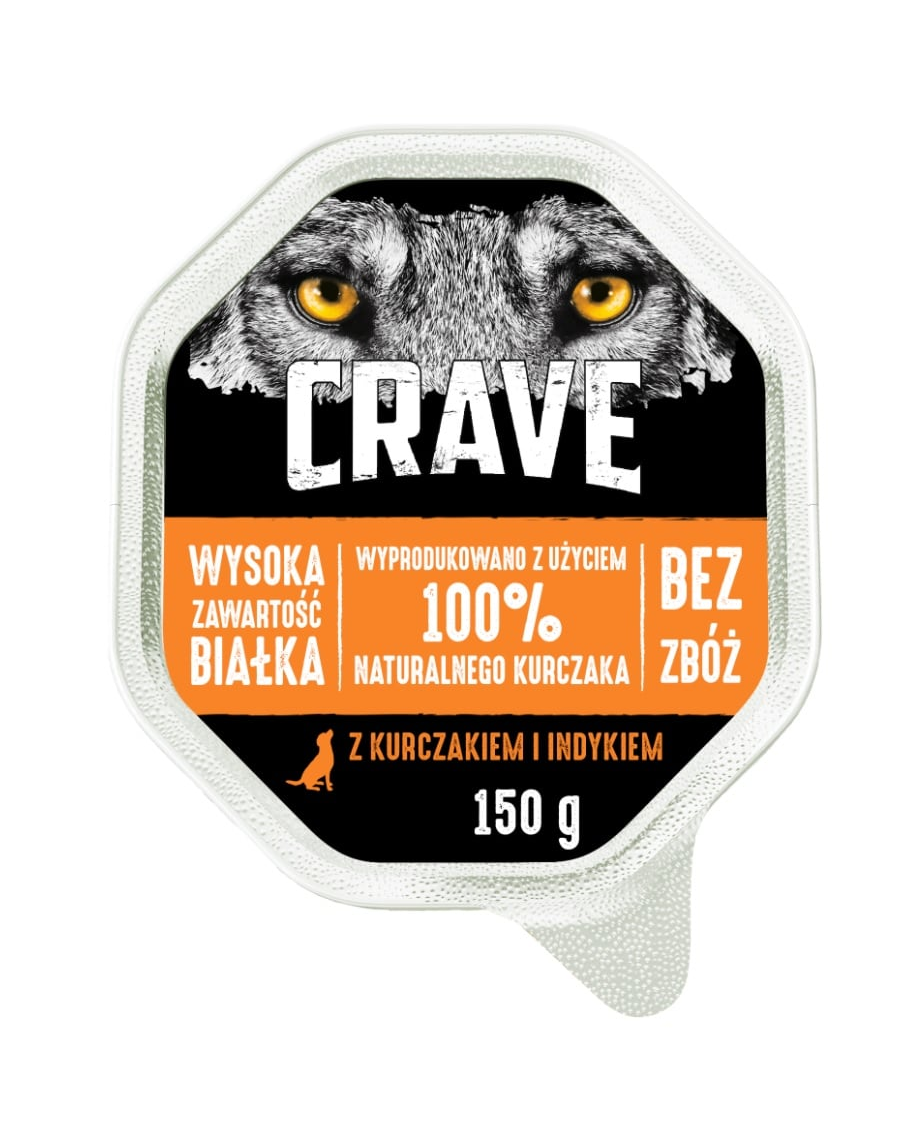 Alimentele au un conținut ridicat de carne și proteine pentru a susține controlul greutății. Produsul este inspirat din dieta naturală a câinilor și, prin urmare, conține 65% ingrediente de origine animală. Crave nu conține cereale și nu conține arome sau coloranți artificiali, astfel încât poate fi administrată animalelor de companie care suferă de alergii și intoleranțe. Se recomandă să vă hrăniți câinele amestecând hrana umedă sub formă de chifteluțe cu hrana uscată.
