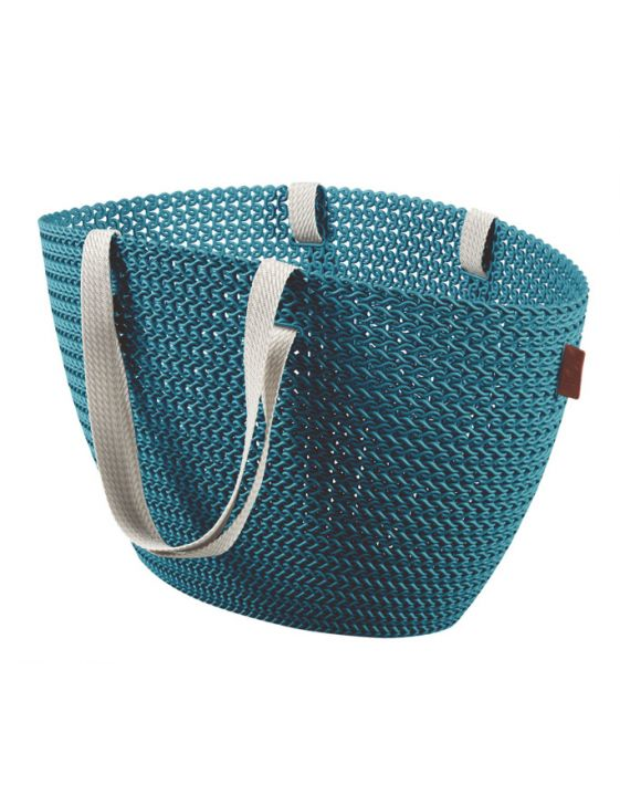 Produsul este echipat cu mânere de pânză care vor susține chiar și cumpărături grele. Este, de asemenea, perfectă pentru excursiile pe plajă, deoarece structura coșului seamănă cu coșurile de plajă de vară, dar spre deosebire de ele, este rezistentă și durabilă.
