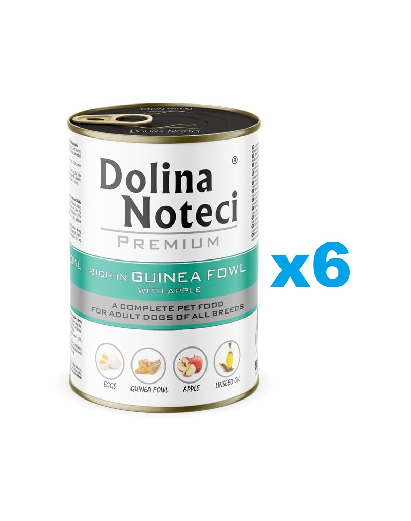 Hrana umedă Dolina Noteci Premium are la bază carnea de bibilică, un ingredient slab, ușor digerabil, bogat în proteine de calitate și cu un conținut redus de calorii. Bibilica furnizează vitamine din complexul B și minerale esențiale, precum fier, potasiu, fosfor și magneziu, alături de acizi grași nesaturați care contribuie la sănătatea pielii și a blănii.